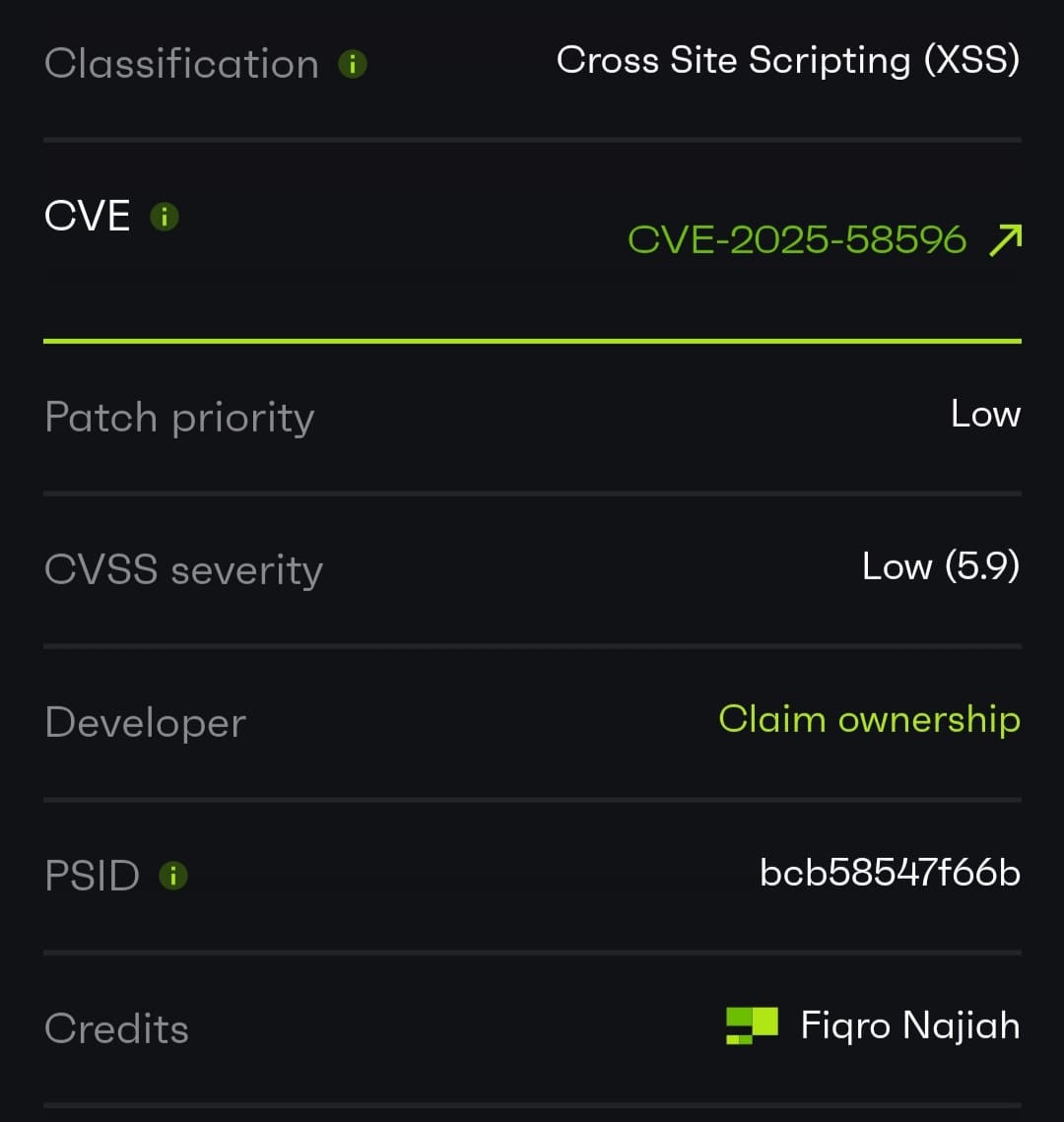 Penghargaan koordinasi temuan kerentanan (Vulnerability) secara etis melalui Patchstack Alliance pada plugin WordPress MailOptin dengan dampak Stored XSS pada 30.000+ instalasi aktif.